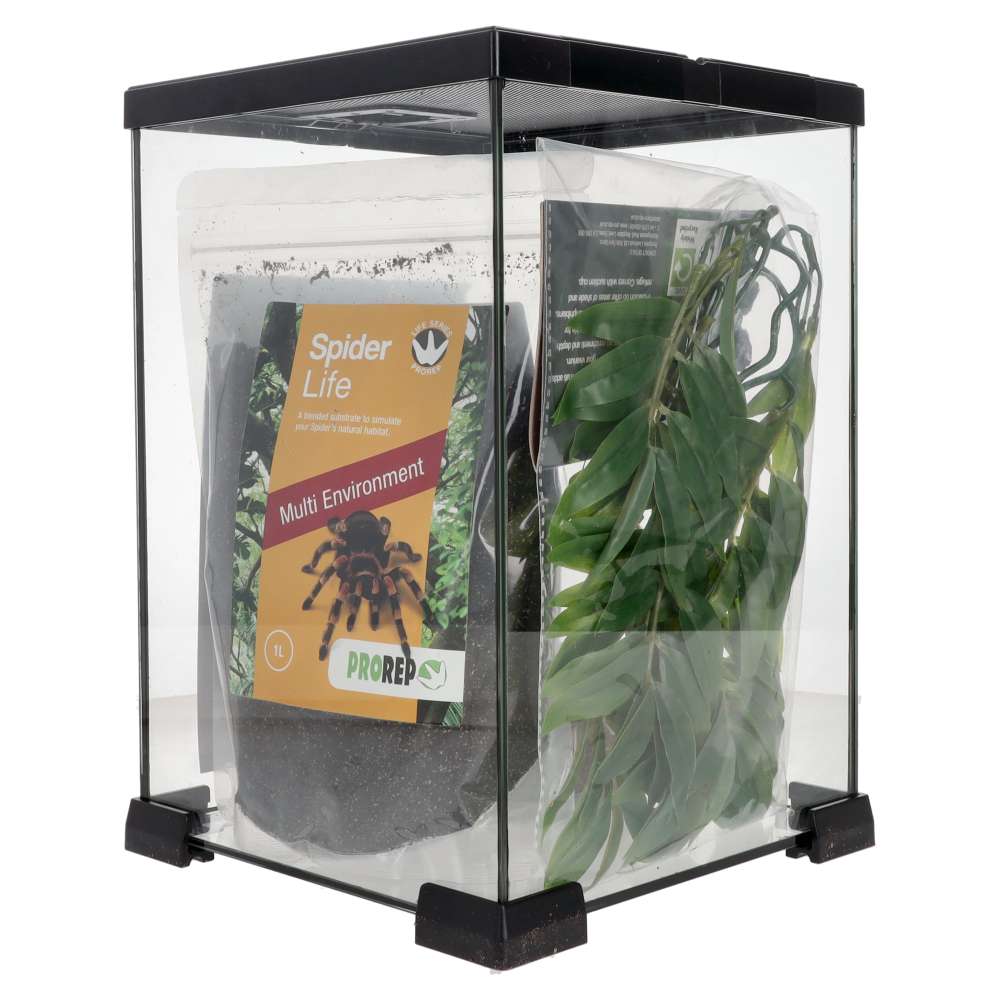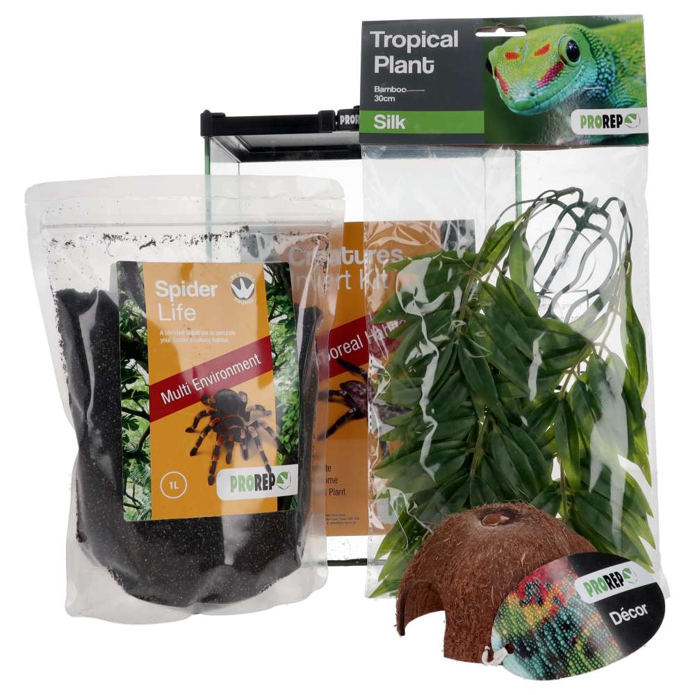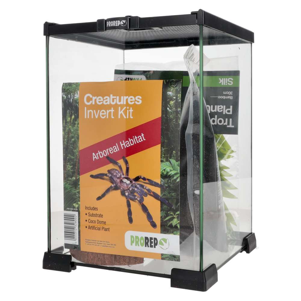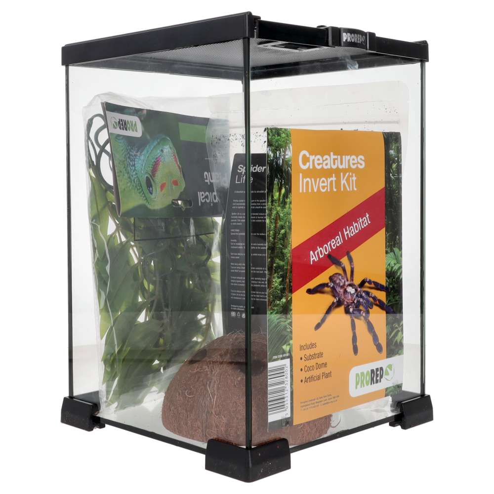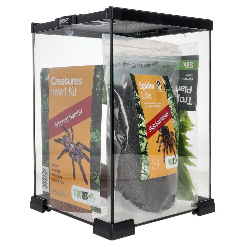 ProRep Creatures Invert Kit Small. Complete starter set for spiders, mantids, and arboreal invertebrates with terrarium, substrate, hide, and décor.
