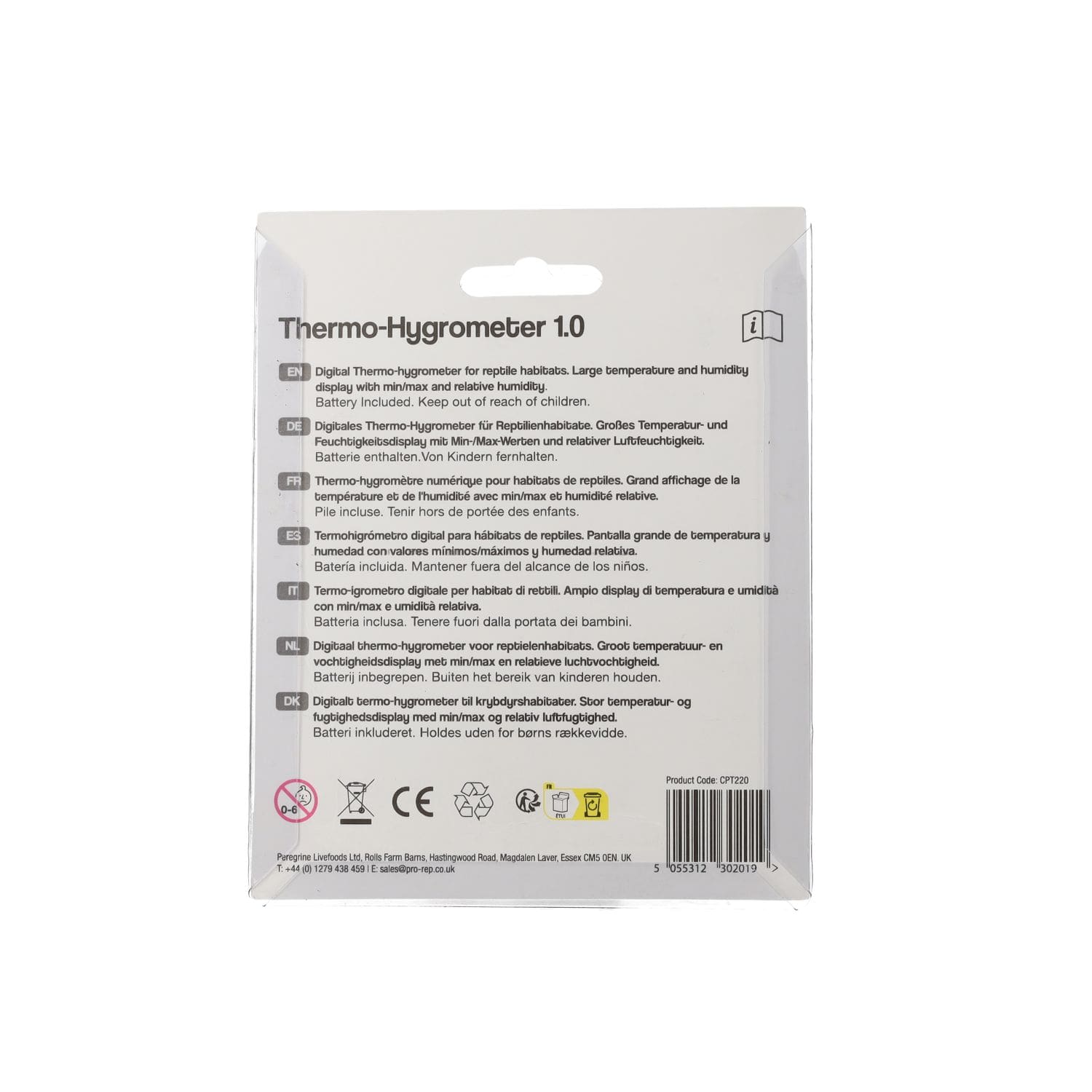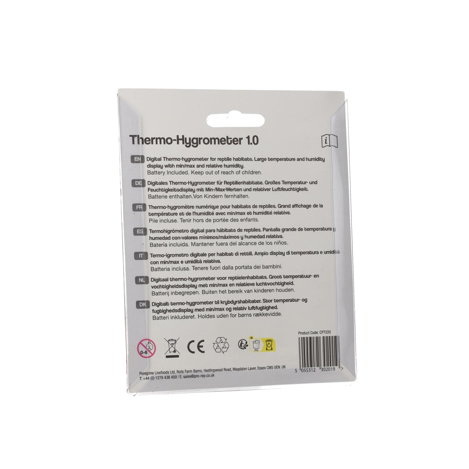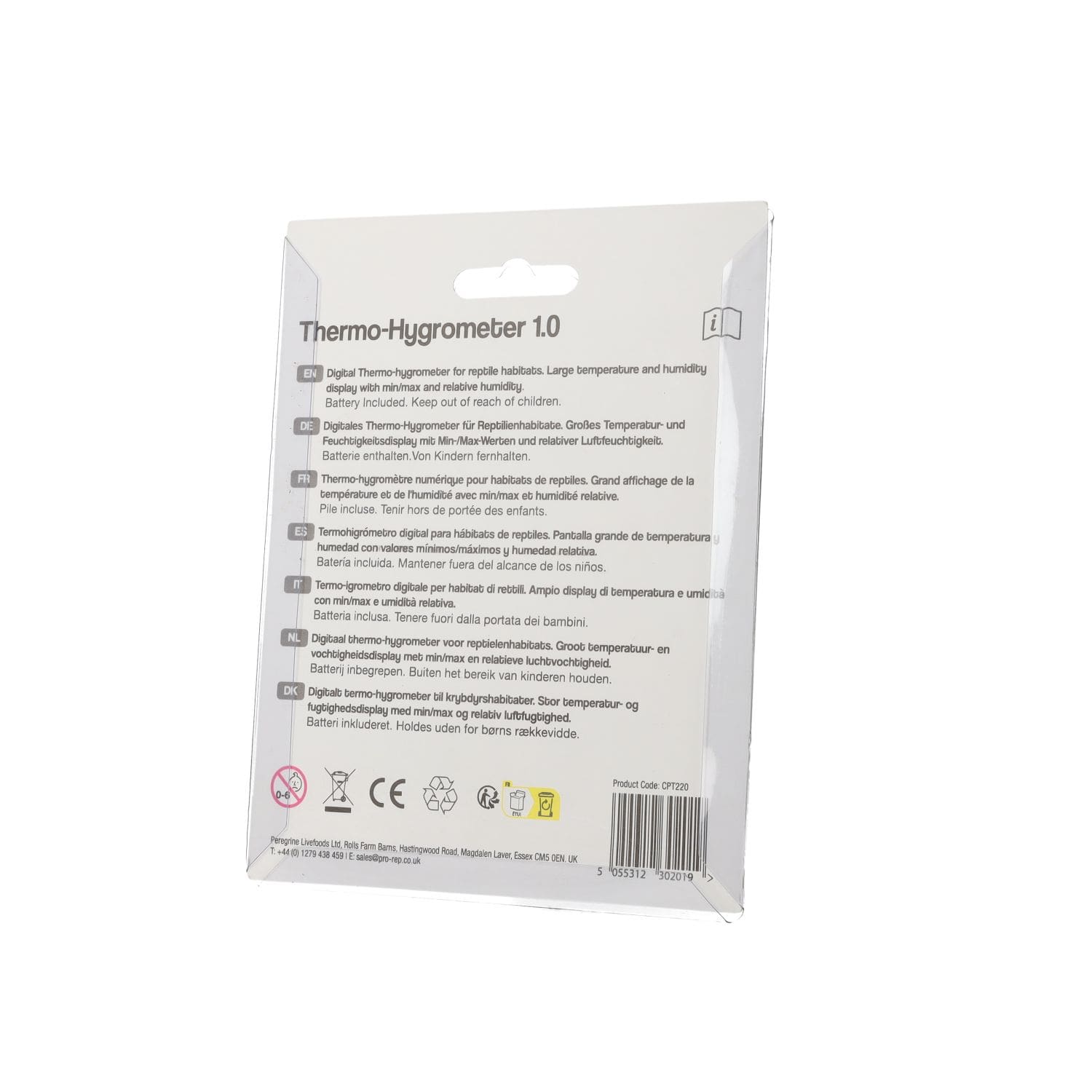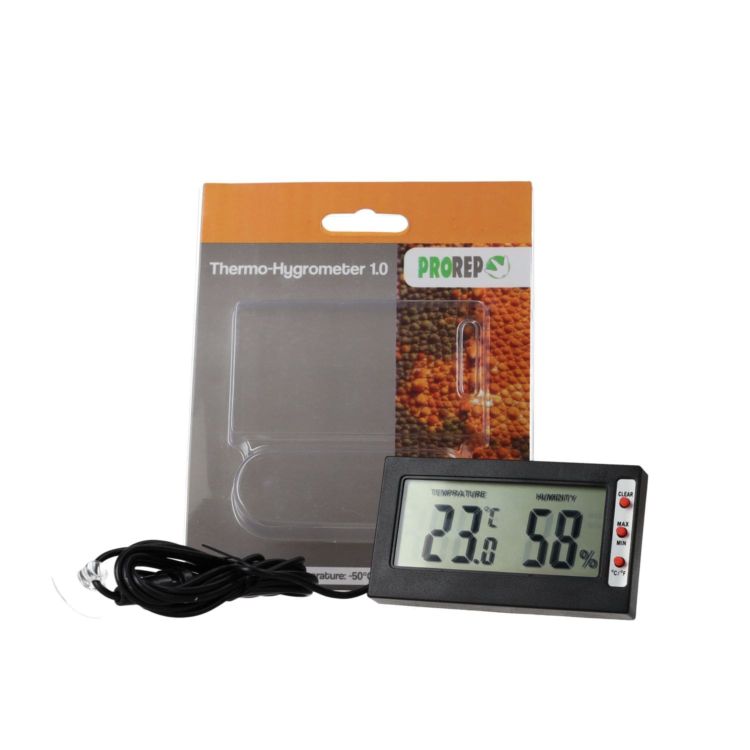 ProRep Thermo-Hygrometer 1.0 – reliable digital monitor for reptile enclosures. Measures both temperature and humidity with easy-to-read LCD display.