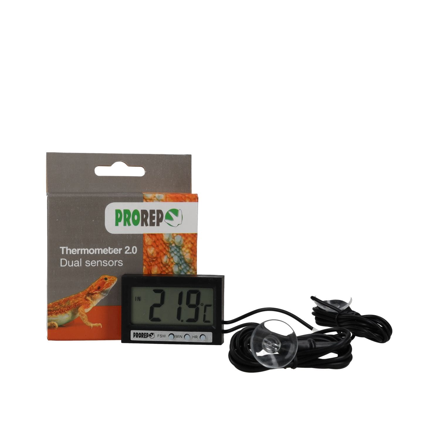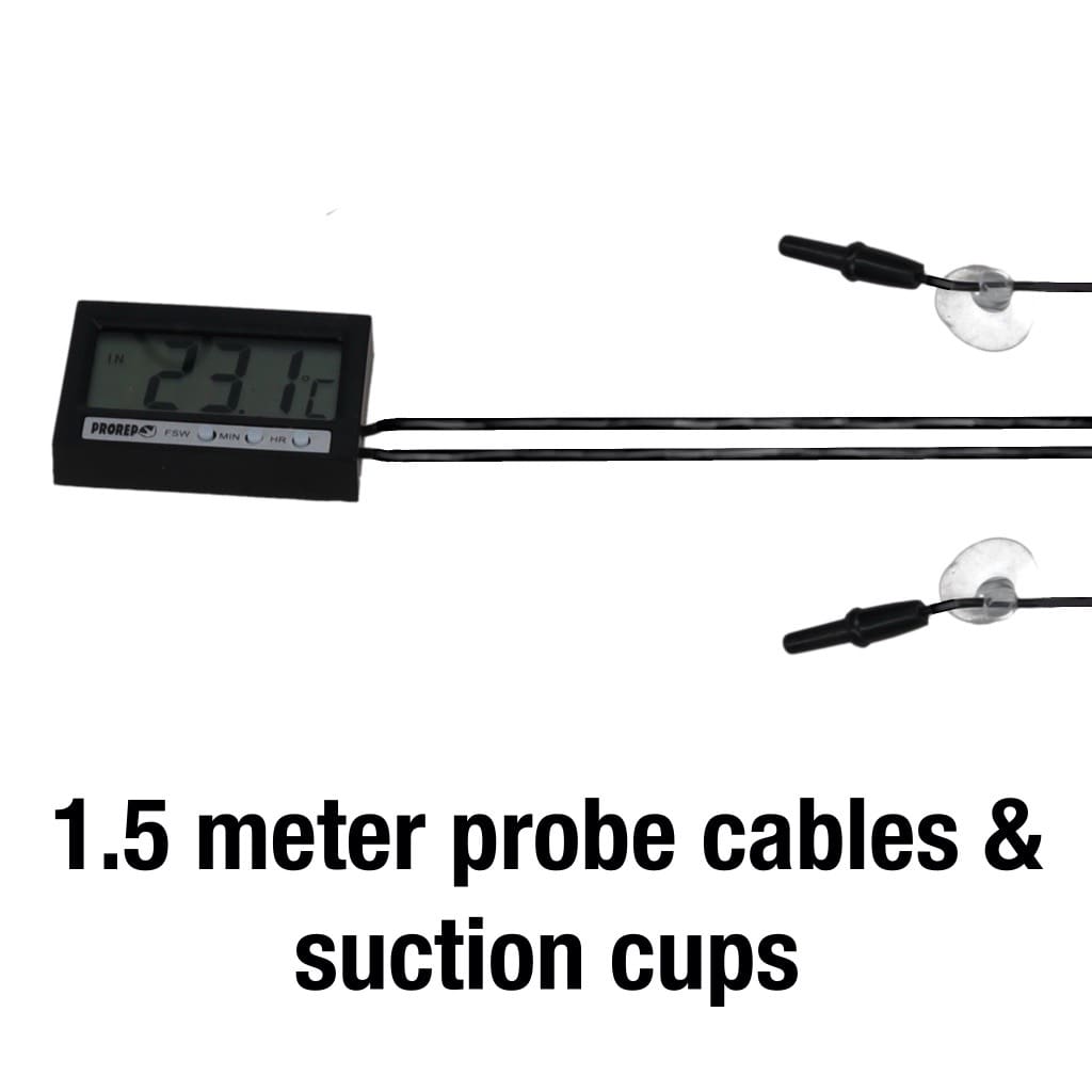 ProRep Thermometer 2.0 – dual-probe digital thermometer for reptile enclosures. Wide -50°C to 70°C range, accurate, compact, and easy to use.