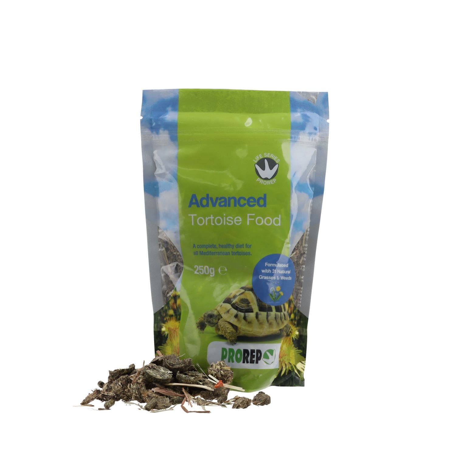 ProRep Advanced Tortoise Food 250g – cold-pressed tortoise diet with 31 grasses and herbs. High fibre for smooth shell growth, strong bones, and natural vitality.