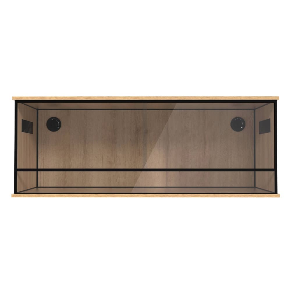 ProRep Vivarium Oak 4ft (120 x 45 x 45cm). Spacious reptile enclosure in oak finish with glass frontage, side vents, and aluminium frame.